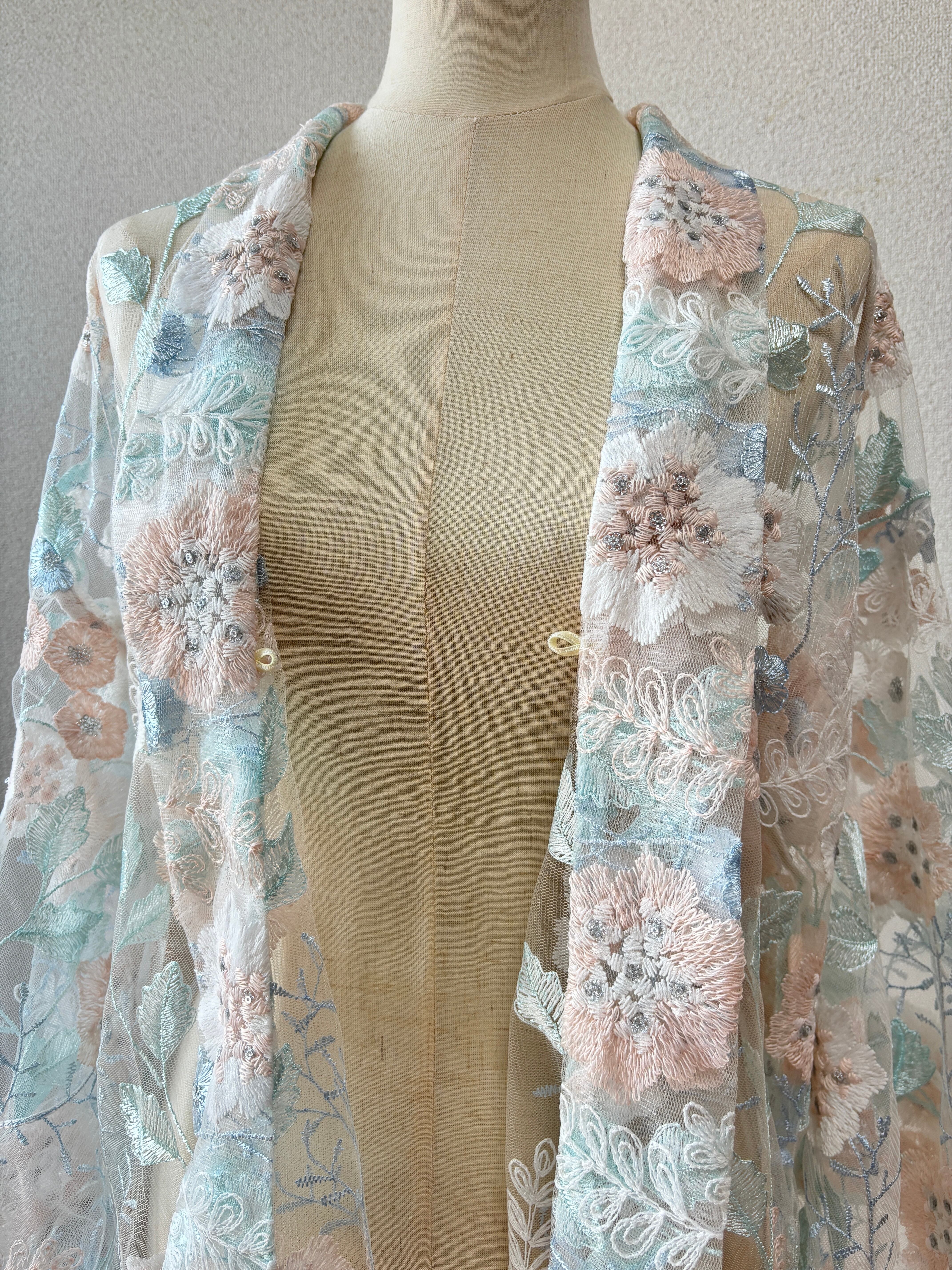 チュール生地に刺繍がされているという生地の特性上、刺繍個所に【糸余り・小さい穴・ほつれ・生地の糸ツレ】が生じることがあります。