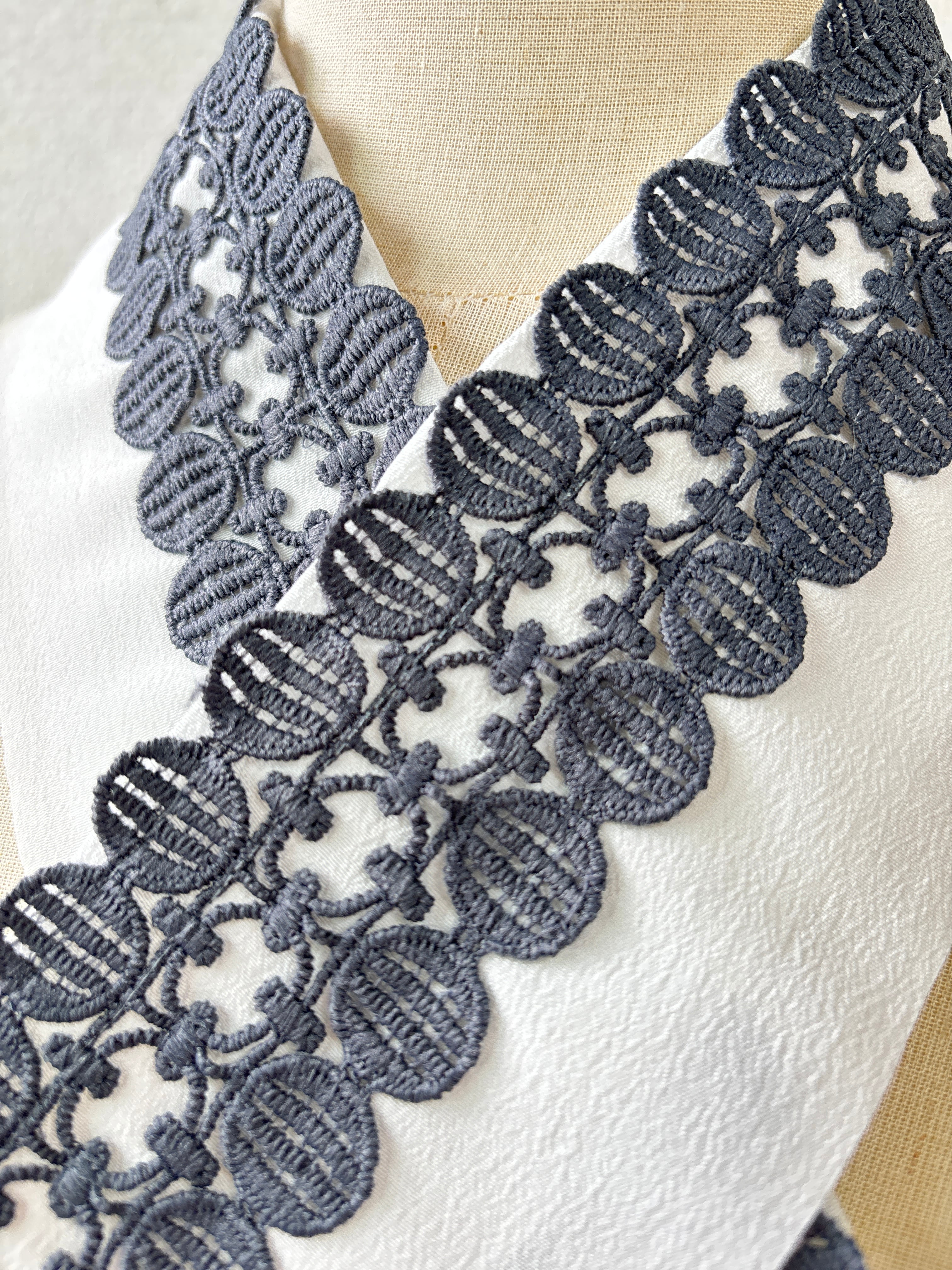 白色に濃いグレーのレースの半衿は、可愛いコーデからモダンなコーデまで幅広くお楽しみいただけます。