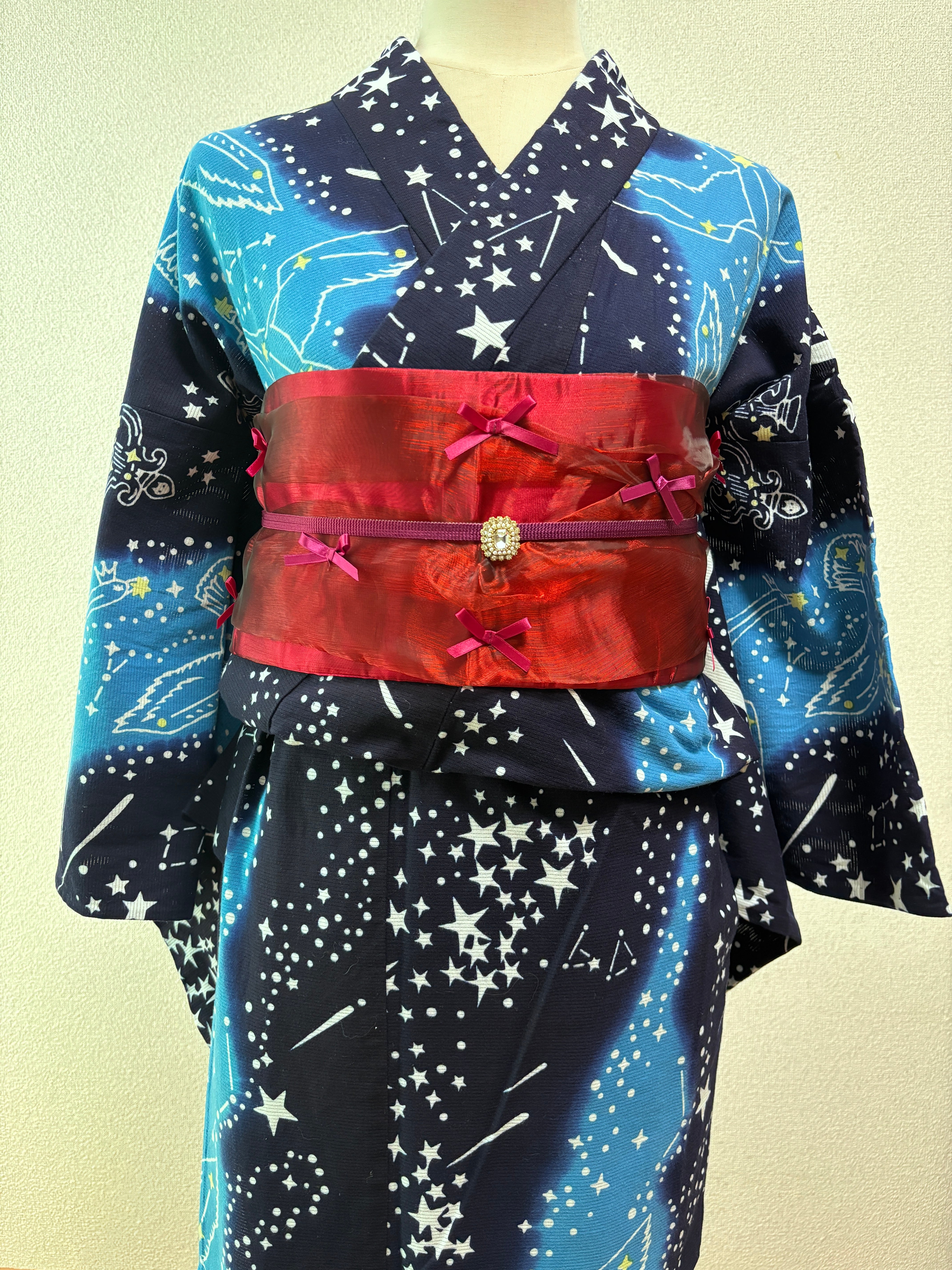 こちらは熱帯魚のベタをイメージしたチュールの創作帯です。