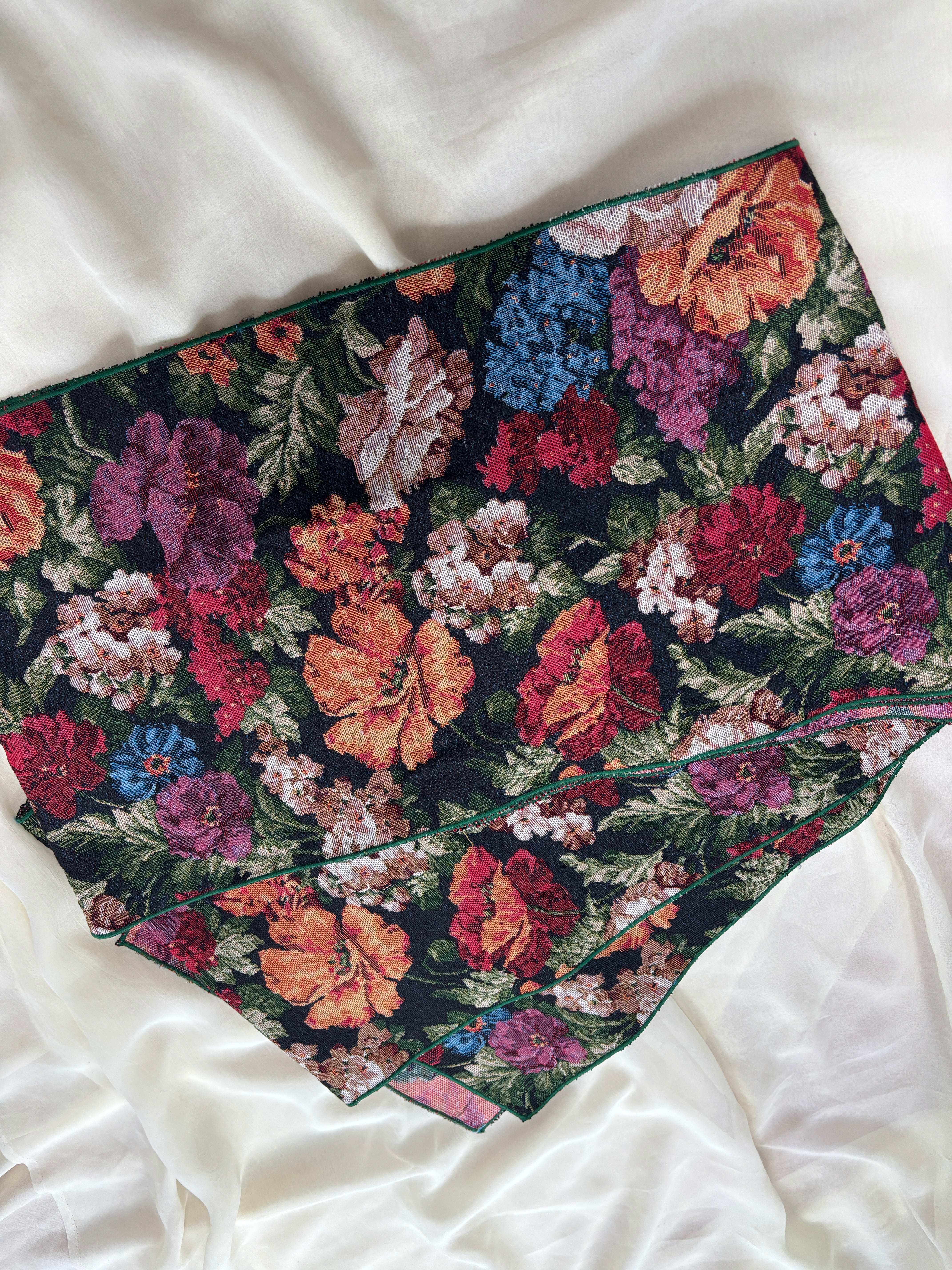 油彩画のようなお花が織られています。