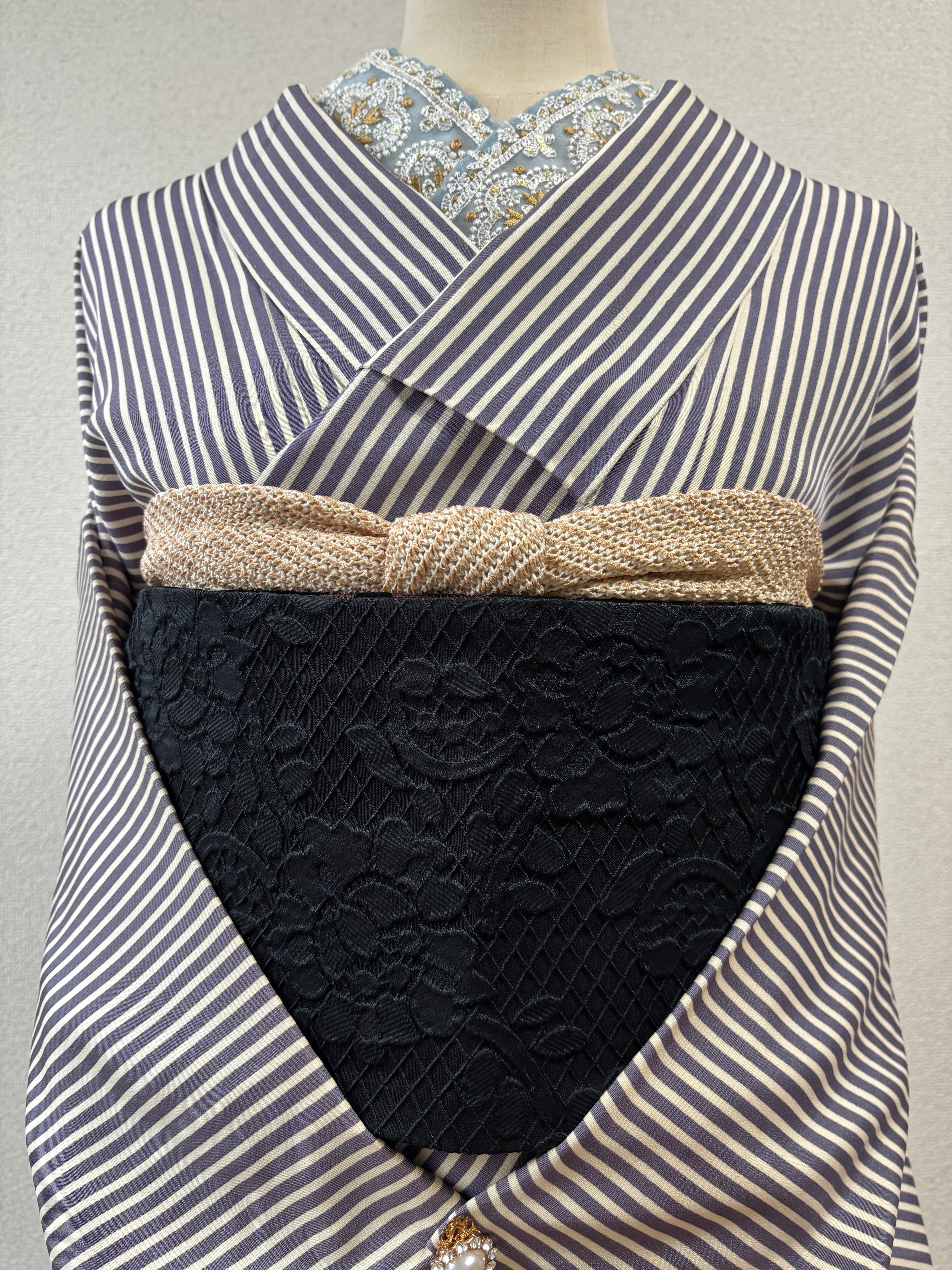 貝の口結びやパタパタ結び(カラテア結び風)はもちろんダブルリボンなどの長さのいる帯結びもしていただけます。