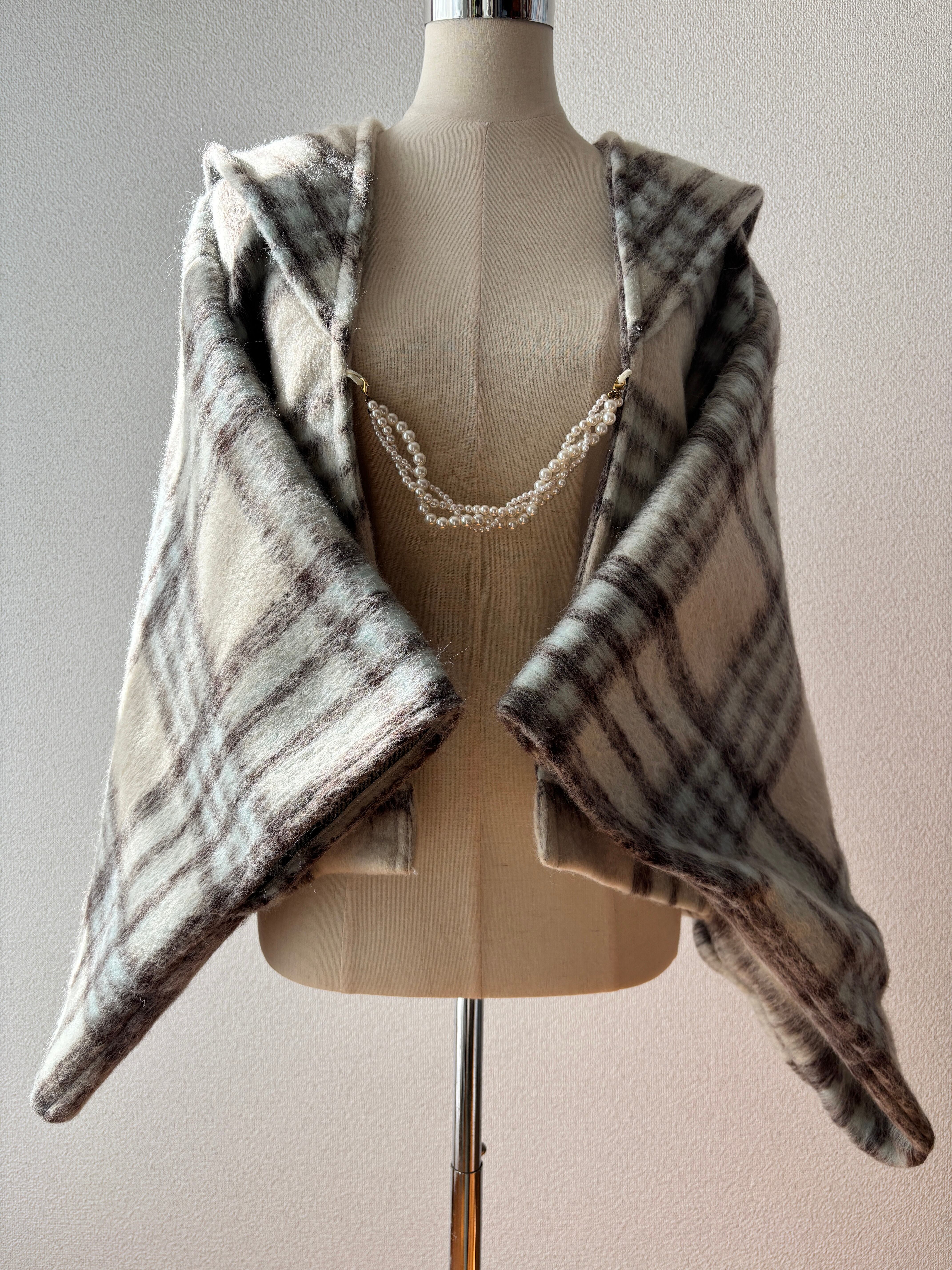 尾州織りのしっかりとした織り目の密なシャギー生地を使い、ショート丈の羽織を作りました。