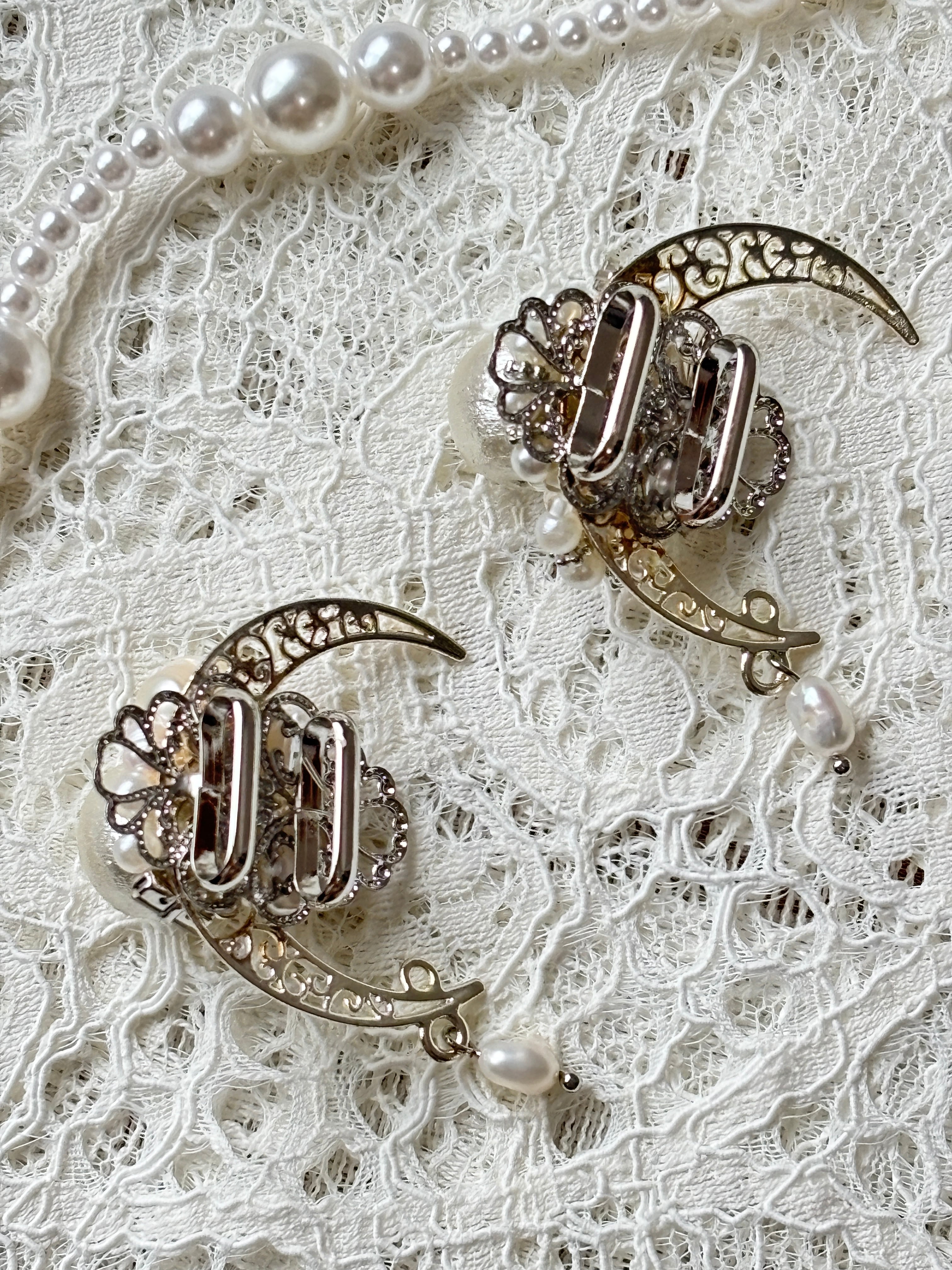 三日月とコットンパールが絶妙に組み合わさったデザインは、重厚感と華やかさを兼ね備えています。