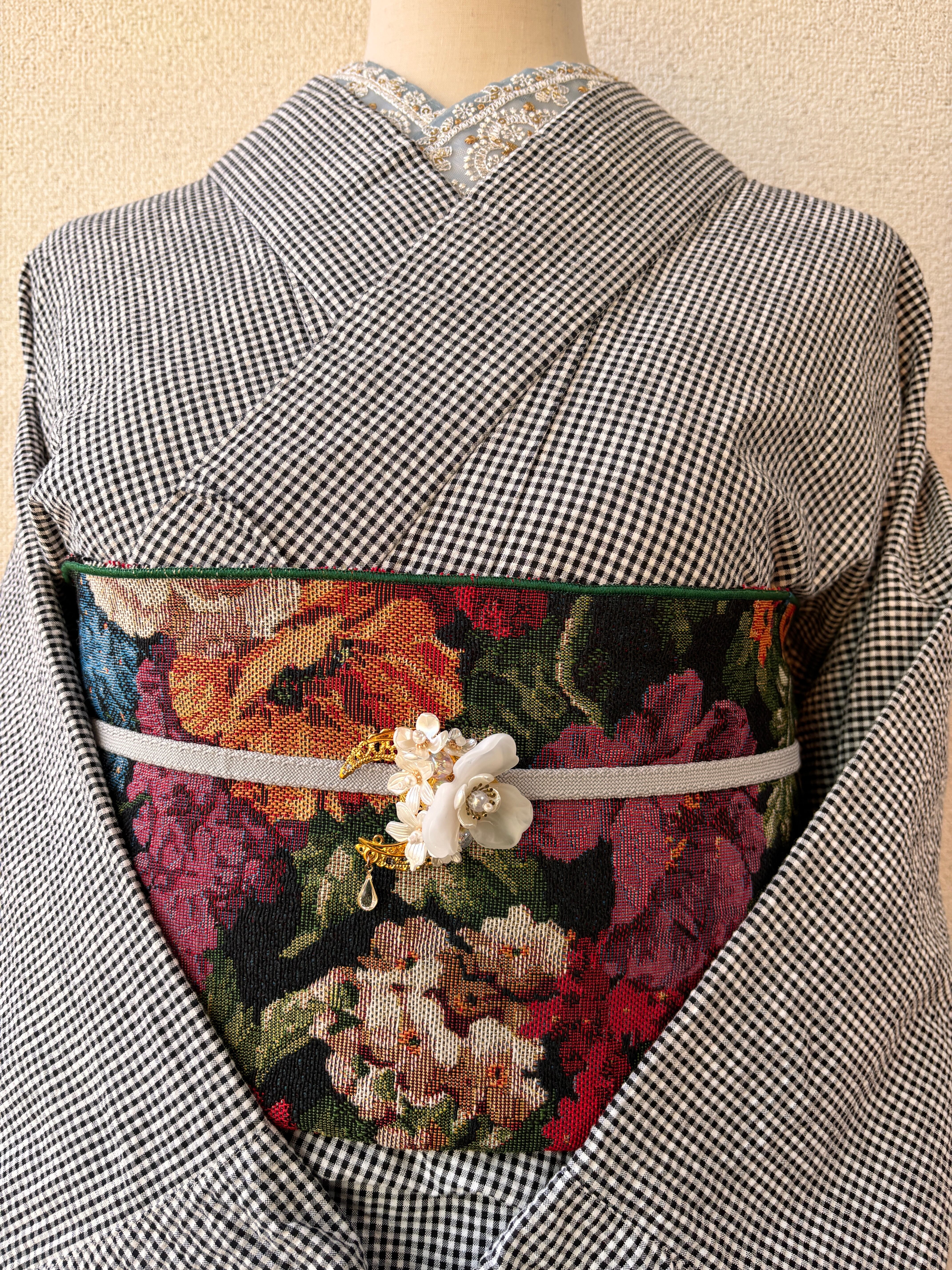 この帯留は、ひとつひとつ手作りしているため、製品ごとに微妙な違いが生じることがありますが、それも手作りならではの味わいとしてお楽しみいただけたら幸いです。