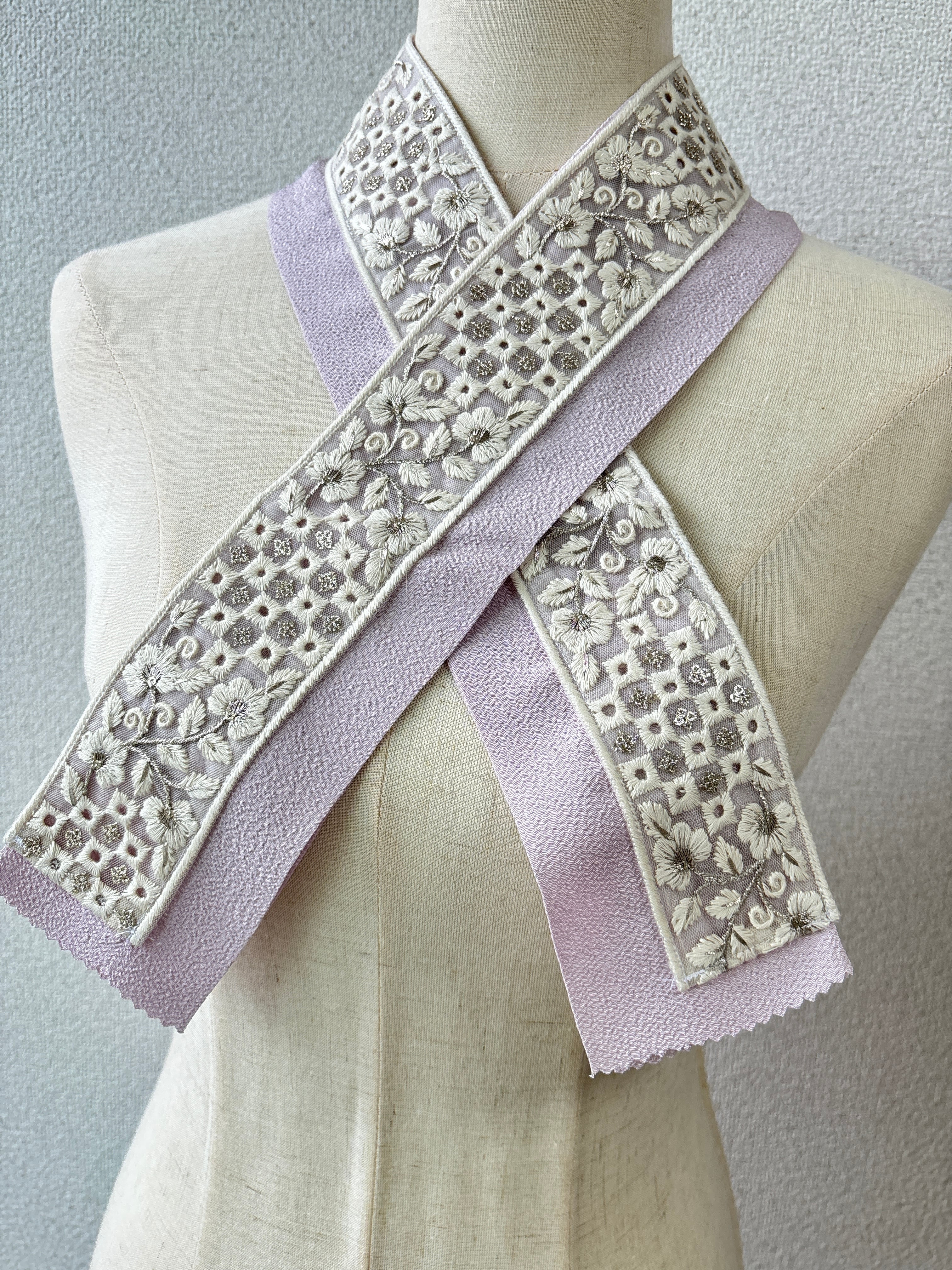 刺繍リボン半衿 ライラックピンク