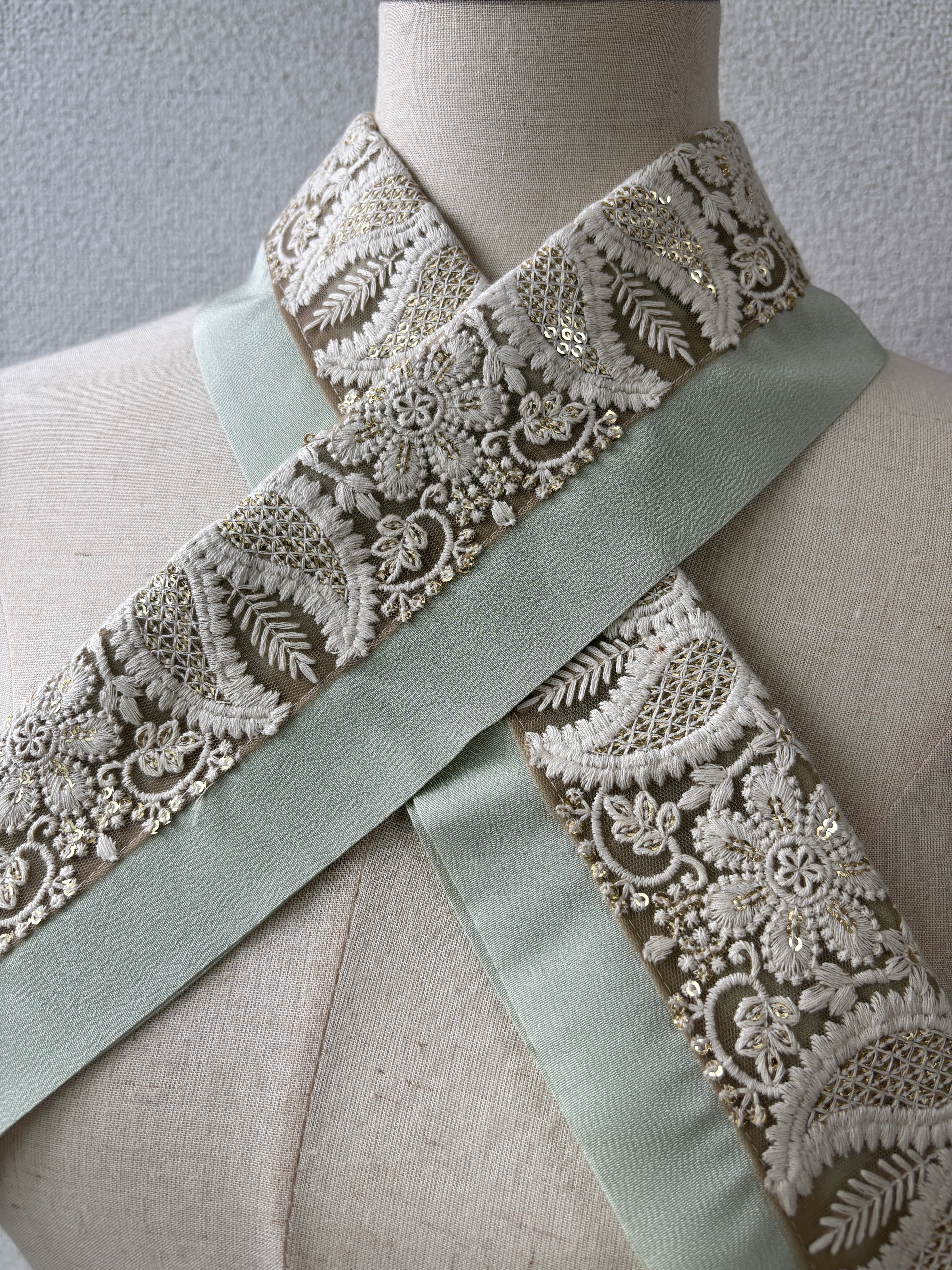 刺繍リボン半衿 ペールグリーン