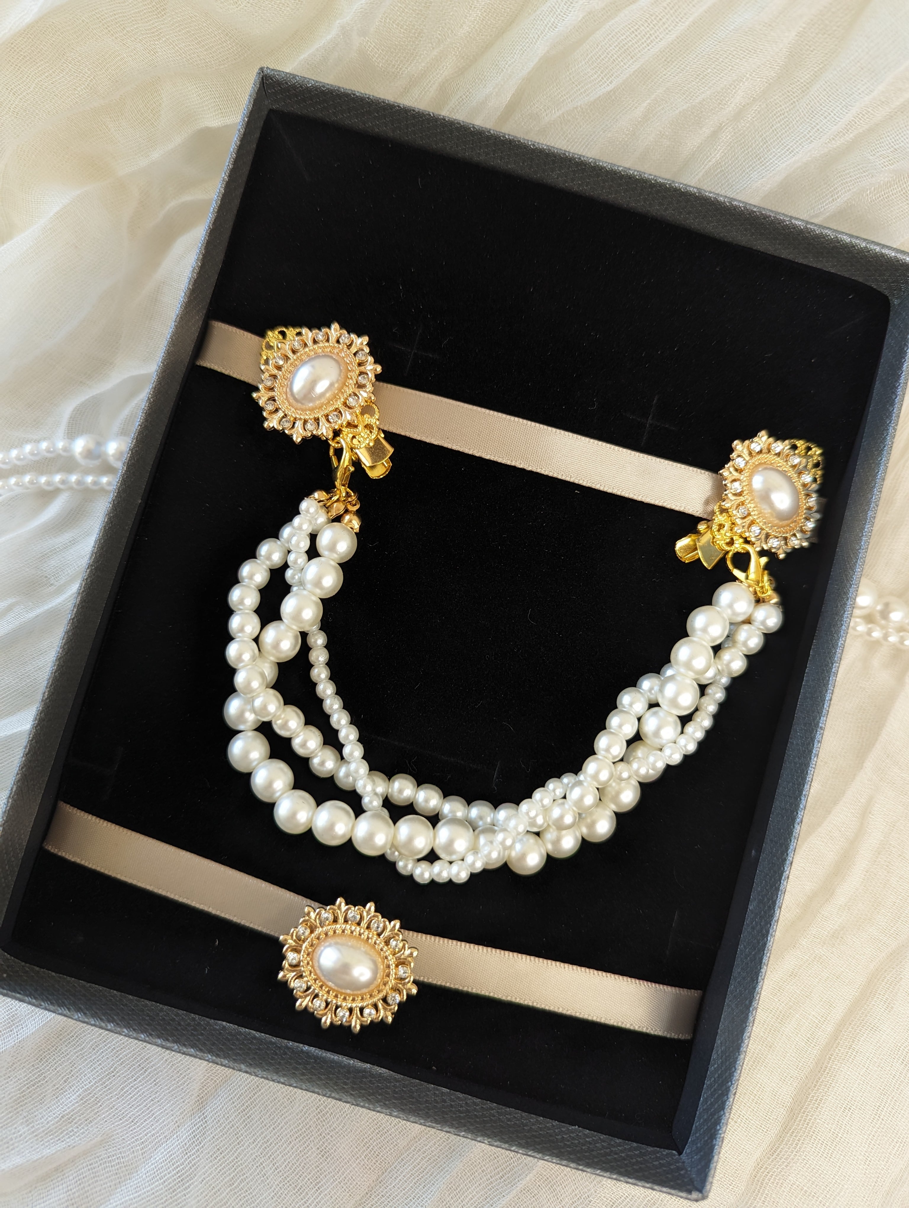こちらは羽織クリップとパール羽織紐、同タイプの帯留めの3点セットでお届けします。